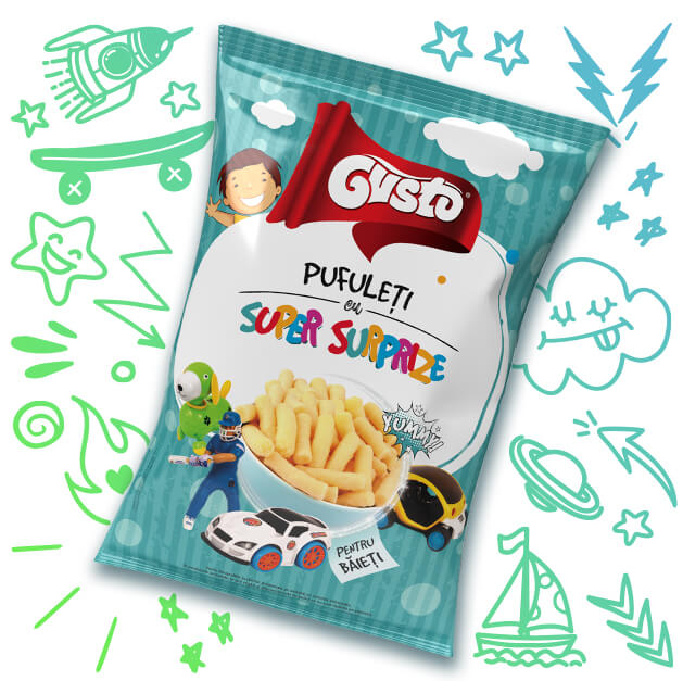 Chcesz dać swojemu dziecku więcej kochanych na całym świecie chrupek kukurydzianych i ekscytacji z otwierania każdej kolejnej paczki od Gusto? Sięgnij po naszą absolutną nowość – chrupki kukurydziane lekko solone 85g z 3 superniespodziankami stworzonymi specjalnie dla chłopców. W wielkiej paczce znajduje się opakowanie przepysznych chrupek kukurydzianych Gusto i aż 3 duże zabawki-niespodzianki idealne dla każdego małego smakosza. Rozpłyńcie się z całą rodziną w niezastąpionym smaku chrupek kukurydzianych i dzielcie się radością z zabawy wyjątkowymi zabawkami-niespodziankami. Chrupki o obniżonej zawartości soli.