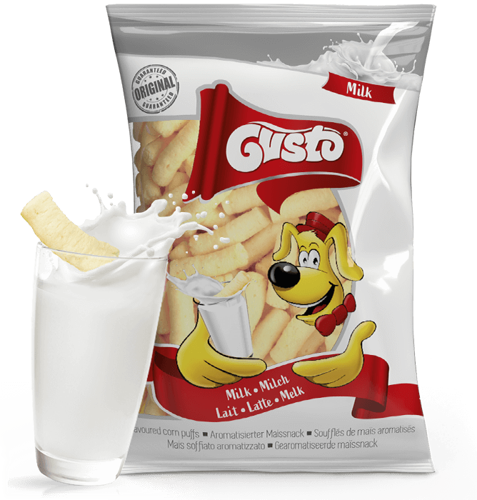 Chrupki kukurydziane Gusto w wersji na słodko. Przepyszne połączenie smaku dzieciństwa z kultowymi chrupkami Gusto. Wyprodukowane na bazie składników naturalnych z dodatkiem 5% pełnego mleka w proszku, bez GMO i ulepszaczy smaku.