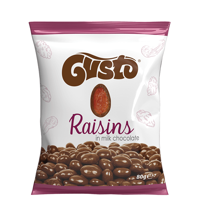 Poznaj miękką konsystencję oraz obłędny smak bakalii Gusto. Nasza zdrowa przekąska przypadnie do gustu wszystkim miłośnikom połączenia rodzynek z prawdziwą czekoladą. Poręczne opakowanie pozwoli Ci je zabrać, gdzie tylko zechcesz. Codziennie możemy spożywać od 70 do 100 gram rodzynek. Idealnie pasują do porannej owsianki lub do jogurtu.